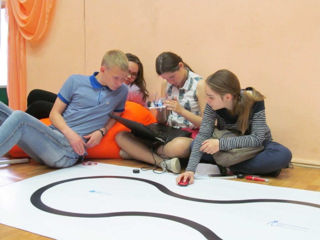 На международных соревнованиях, для роботов на Линии, применяется математический аппарат, использующий принцип ПИД-регулятора (Пропорциональный Интегрально Дифференциальный регулятор) (вот и пригодились знания физики и математики), суть которого объяснил Эдуард Петренко. Ребята из школ программирования освоили материал, но наши первокурсники не поняли ничего. И это им простительно. Тогда наставник МТКП Андрей Будняк посоветовал применить простой релейный регулятор. И надо сказать, что, учитывая конструкцию робота, материал колес, извилистость трассы и скорость робота, можно добиться отличного результата.