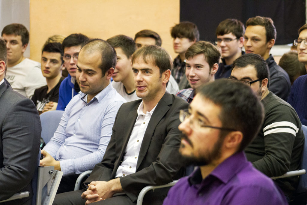 Перед студентами выступил выпускник 2016г., а ныне программист АО «ЦНИРТИ им. академика А.И. Берга» Семенов Д.С.. В своем выступлении он поделился о свой работы на предприятии, о используемых языках программирования на предприятии, о льготах, о дальнейшем обучении в вузах от предприятия, и пригласил приходить на преддипломную практику и в дальнейшем трудоустройстве.