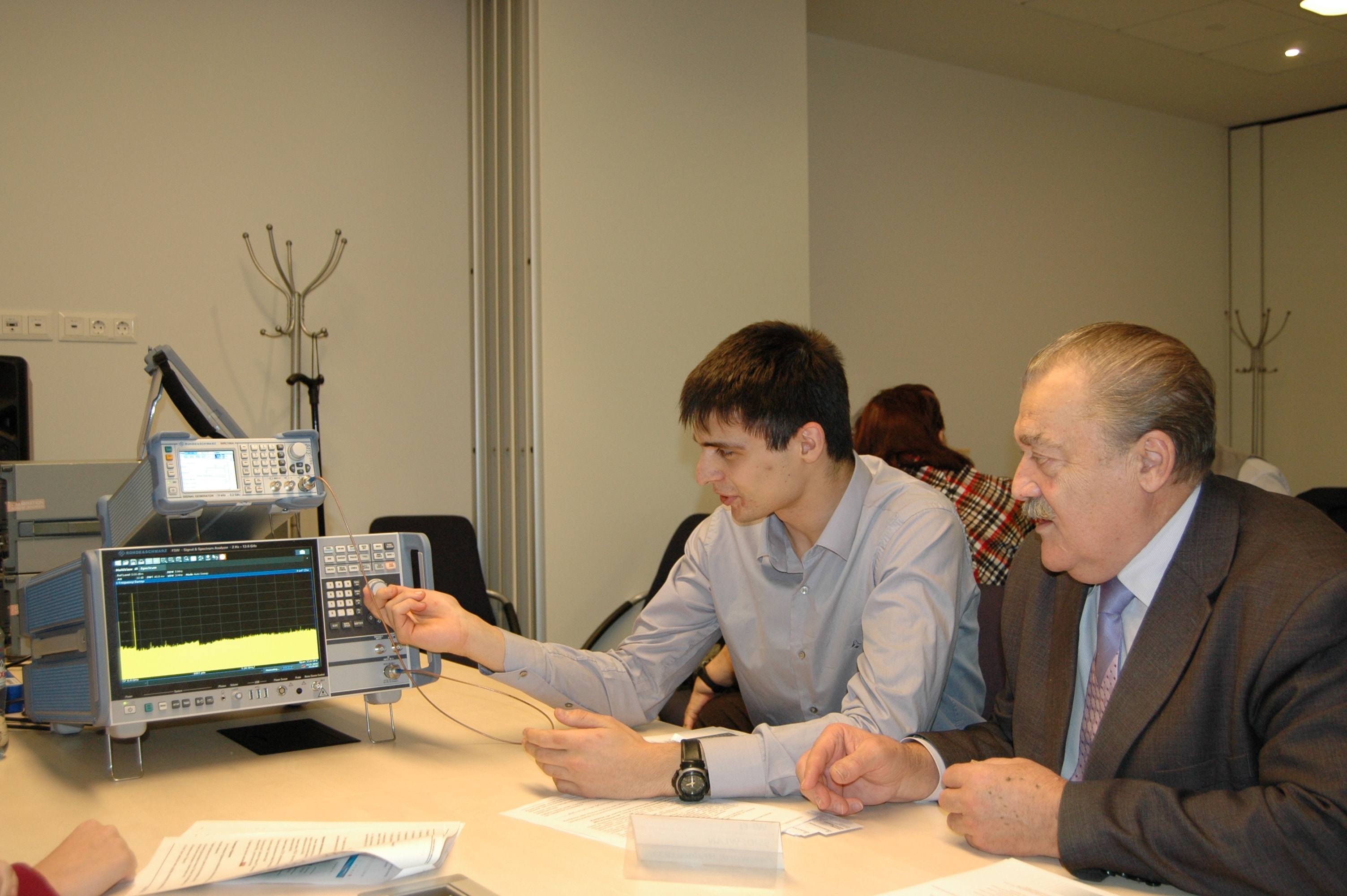 К числу достоинств мероприятия также нужно отнести практические работы на стендах: стенд для первичного знакомства с новым прибором (базовые спектральные измерения); стенд для измерения фазовых шумов на новом анализаторе спектра; стенд для измерения параметров импульсных сигналов; свободно конфигурируемый стенд для любых доступных измерений. В процессе работы мы опирались на подготовленные компанией методические рекомендации, но в любую минуту могли обратиться за разъяснениями непосредственно к сотрудникам компании и сразу получить необходимую информацию. Расширяя свой профессиональный кругозор, углубляя знания, совершенствуя навыки и компетенции, мы одновременно учились общаться, устанавливать контакты с потенциальными работодателями, говорить на языке будущей специальности — словом, приобретали еще и ценный социальный опыт.