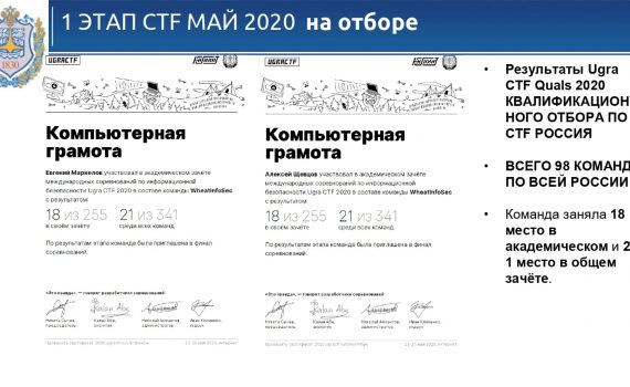24 ноября 2020 года студенты МТКП МГТУ им. Н.Э. Баумана Константин Анастасьев,  Артемий Сорокопудов, Евгений Маркелов, Алексей Шевцов (группа ТИ-71) и Елизавета Гросс,  Полина Панько, Сергей Бобылев (группа ТИП-51) стали участниками Юниорской олимпиады по информационной безопасности Ugra CTF., организованной Югорским НИИ информационных технологий при поддержке Департамента информационных технологий и цифрового […]