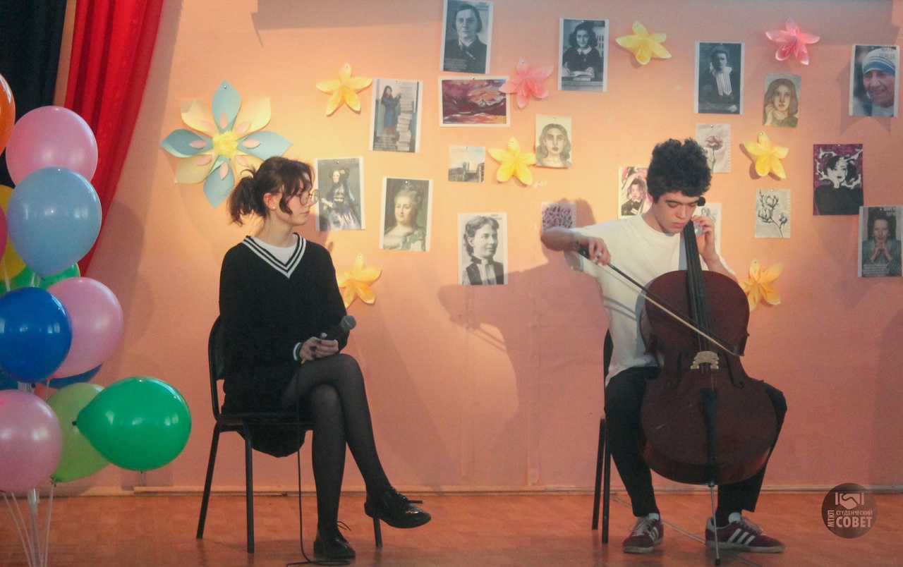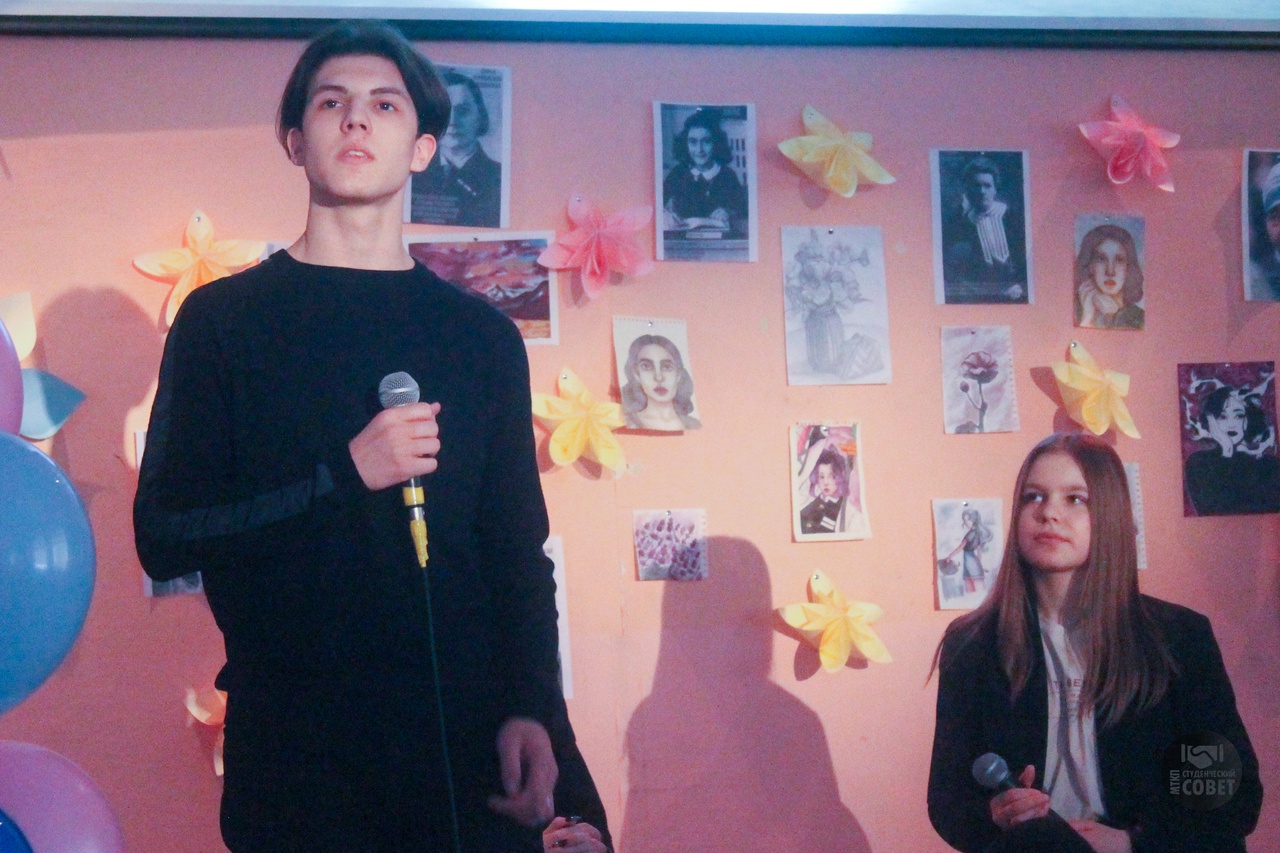 Концерт, посвященный Международному женскому дню всегда яркое и волнующее событие культурной жизни любого учебного заведения. Мы предоставляем ребятам возможность самостоятельно писать сценарии, определять содержание, хронометраж и программу праздника. Так было и на этот раз. Сценарий, воплощенный ведущими концерта Дашей Горшковой (ТЭ-21) и Матвеем Хохловым (ТСА-41), бесспорно стал изюминкой концерта. Романтическая история о том, как молодой человек пытается обратить на себя внимание девушки и в итоге успешно справляется с непростой задачей, сделала мероприятие зрелищным и одновременно очень эмоциональным.