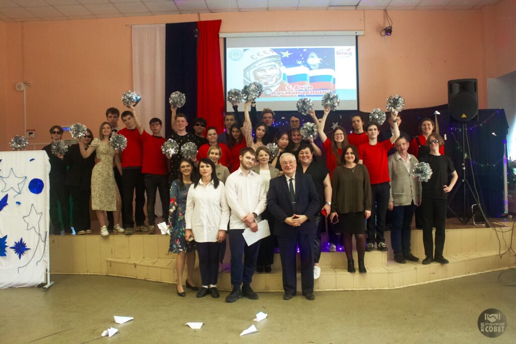 … Представьте, что очень давно, 78 лет назад, из Волховского переулка в путешествие отправился огромный космический корабль под названием «МТКП». Цель полета — Светлое будущее. С Днем космонавтики всех поздравил капитан корабля, хранитель артефакта «Сердце педагога», Владимир Анатольевич Киреев. А далее последовали номера: вальс «Прощание с Землей», космический фаербол, битва на световых мечах, акробатические номера программистов, парад планет – презентация получаемых в техникуме профессий, песни о Гагарине, о крыльях, которые дают возможность подняться к вершинам профессионального мастерства, световые эффекты, прекрасная хореография. Зал встречал выступающих тепло, а порой даже восторженно.