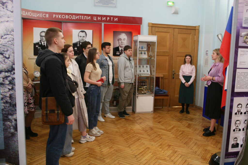 Экскурсия состояла из двух частей. Первая часть проходила в музее института, где студенты ознакомились с приборами и устройствами  радиоэлектронной разведки и радиоэлектронной борьбы авиационного, наземного и космического базирования, созданными в институте в разные годы.