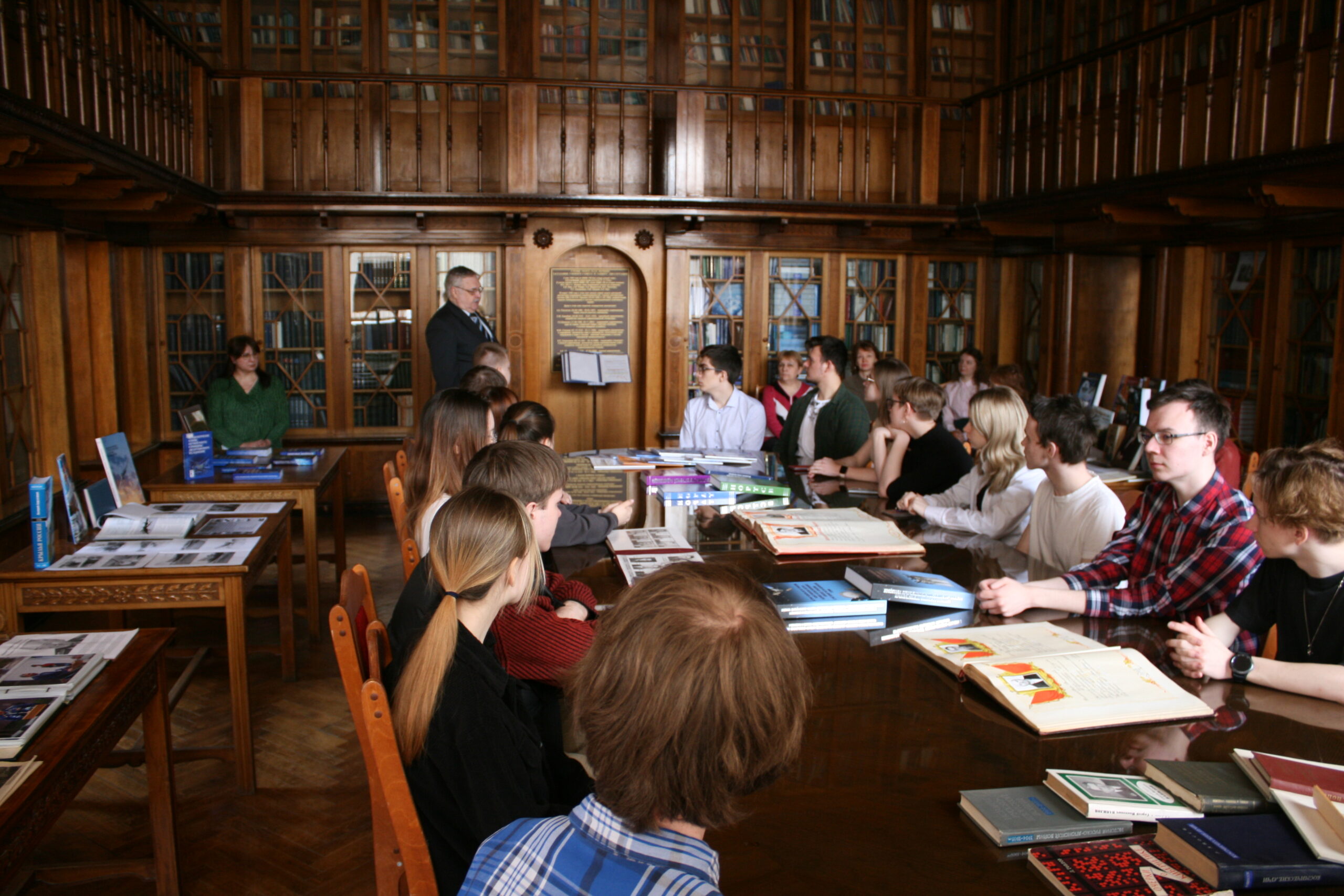 Затем в библиотеке института студентам рассказали о научных достижениях и открытиях, сделанных исследователями  АО «ЦНИРТИ им. А.И. Берга»  с момента создания предприятия в 1943 году.   У ребят была возможность подержать в руках книги и журналы, которые сегодня являются достоянием истории. Некоторые экземпляры, например, принадлежали лично академику Акселю Бергу – первому директору научно-исследовательского института.