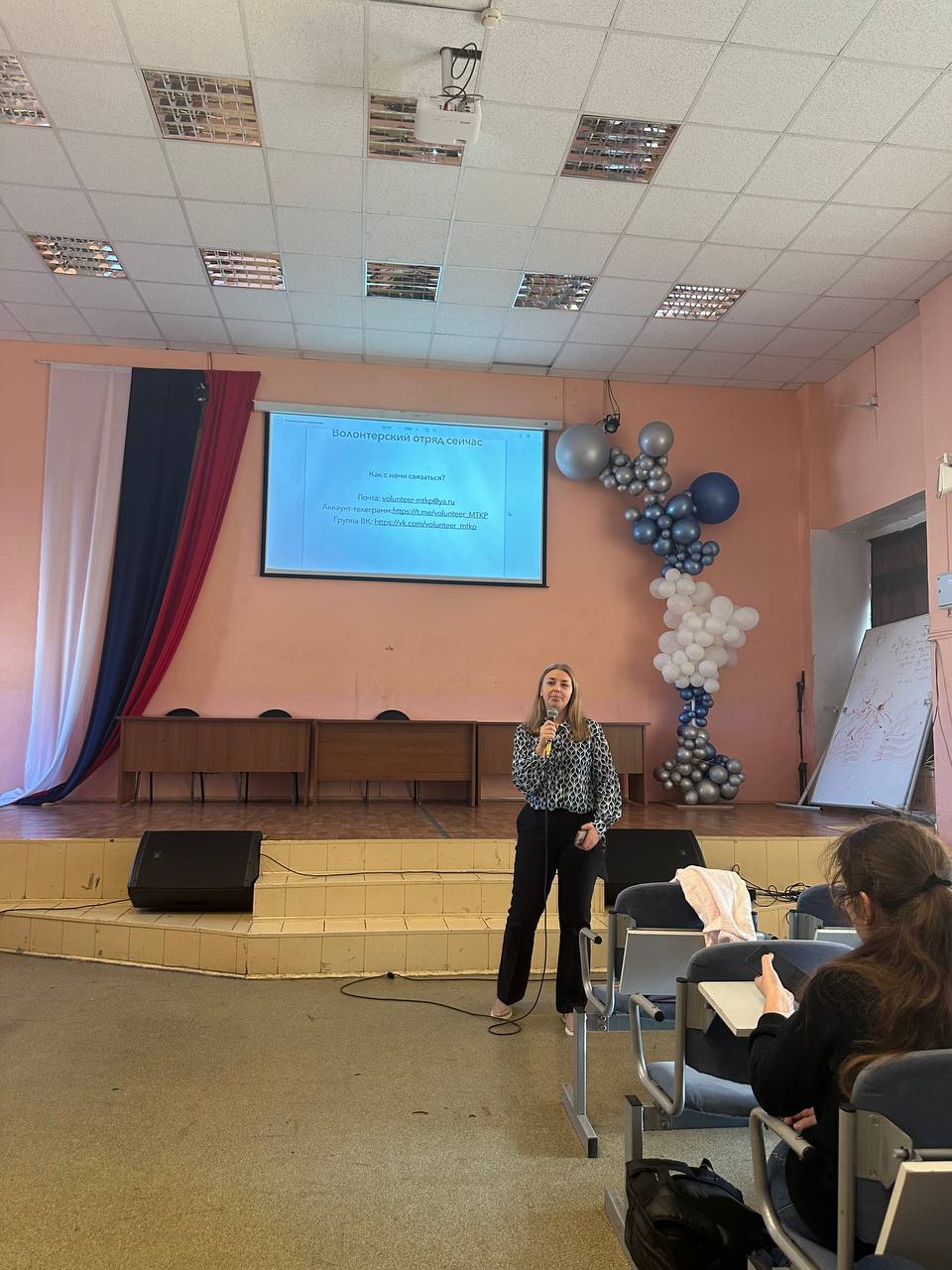 Большой интерес слушателей вызвал рассказ о появлении организации в техникуме. В октябре 2022 года возникла идея создания волонтёрского объединения, в феврале 2023 года начался набор в волонтёрский отряд. 14 февраля состоялось первое мероприятие, приуроченное к Дню Святого Валентина. С марта по июнь 2023 года волонтеры провели и посетили множество акций: «Коробка добра» – сбор одежды для нуждающихся, участие в проведении Дня открытых дверей МТКП, помощь в реконструкции Музея боевой славы Волховского фронта, посещение мероприятия, посвященного Дню памяти россиян, исполнявших долг за пределами Отечества. Всего волонтеры МТКП посетили около 80 мероприятий. Деятельность наших ребят отмечена федеральными и региональными наградами.