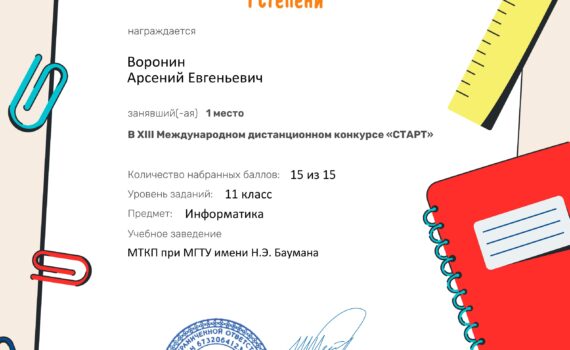 19-22 февраля 2024 года студенты I курса МТКП приняли участие в Международном дистанционном конкурсе по информатике «Старт» для школьников 11 классов и учащихся СПО. Мероприятие было подготовлено и проведено ООО «Инфоурок». Участники конкурса должны были ответить на 15 вопросов по информатике. Вопросы касались материала, изученного в течение I и II […]