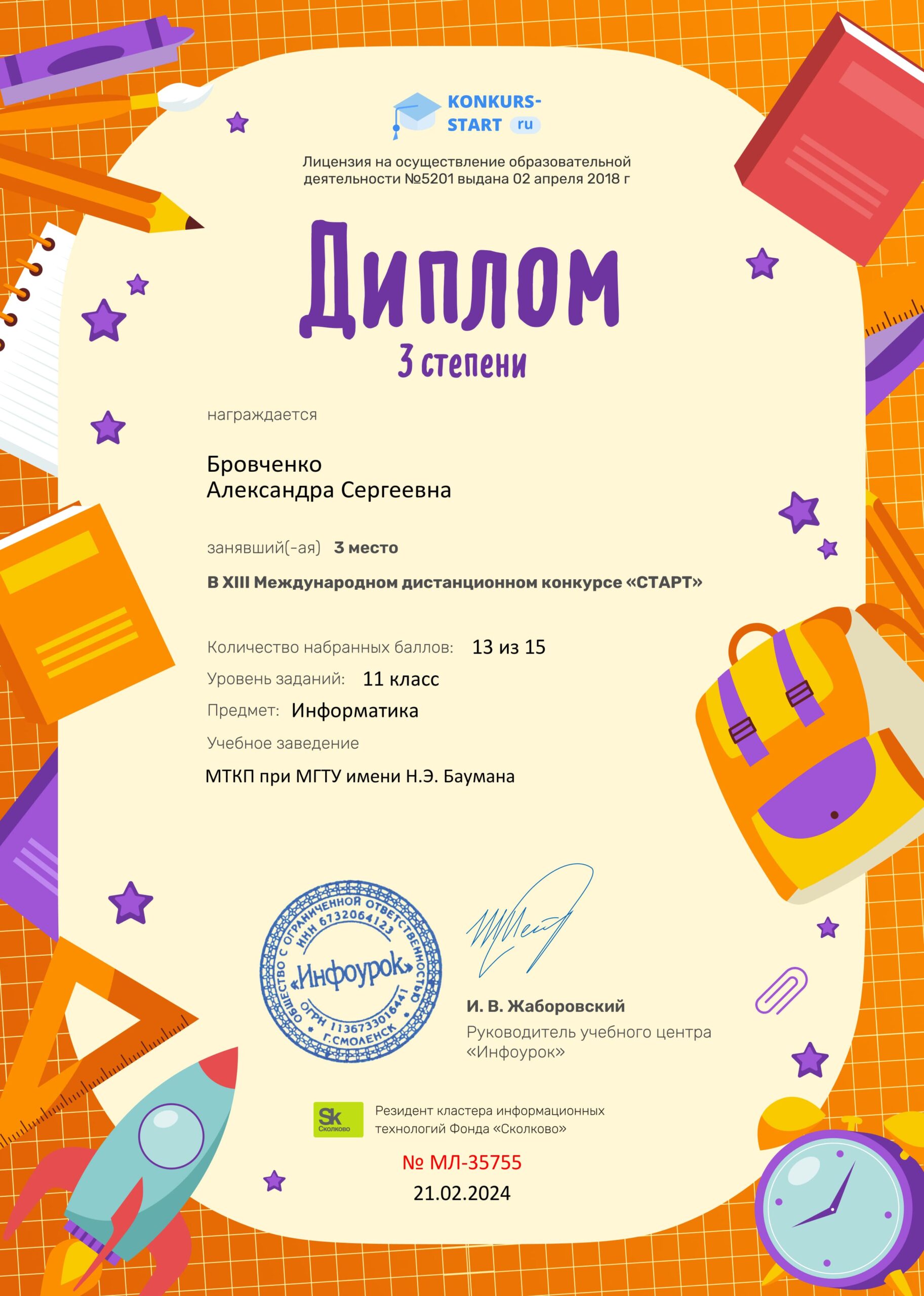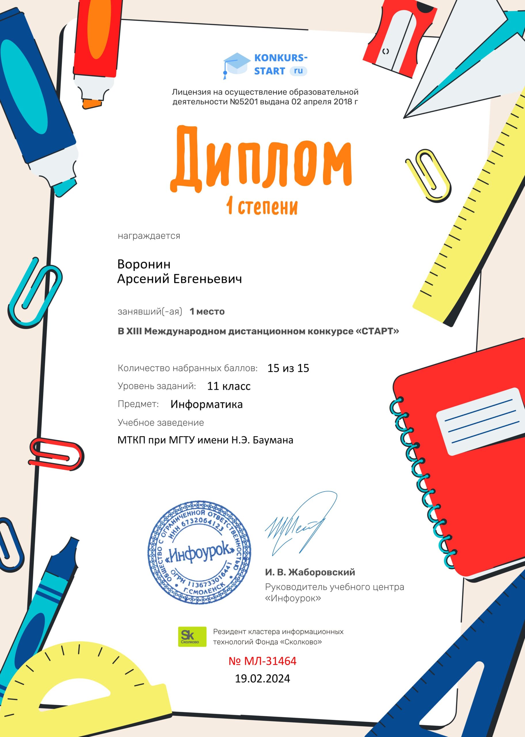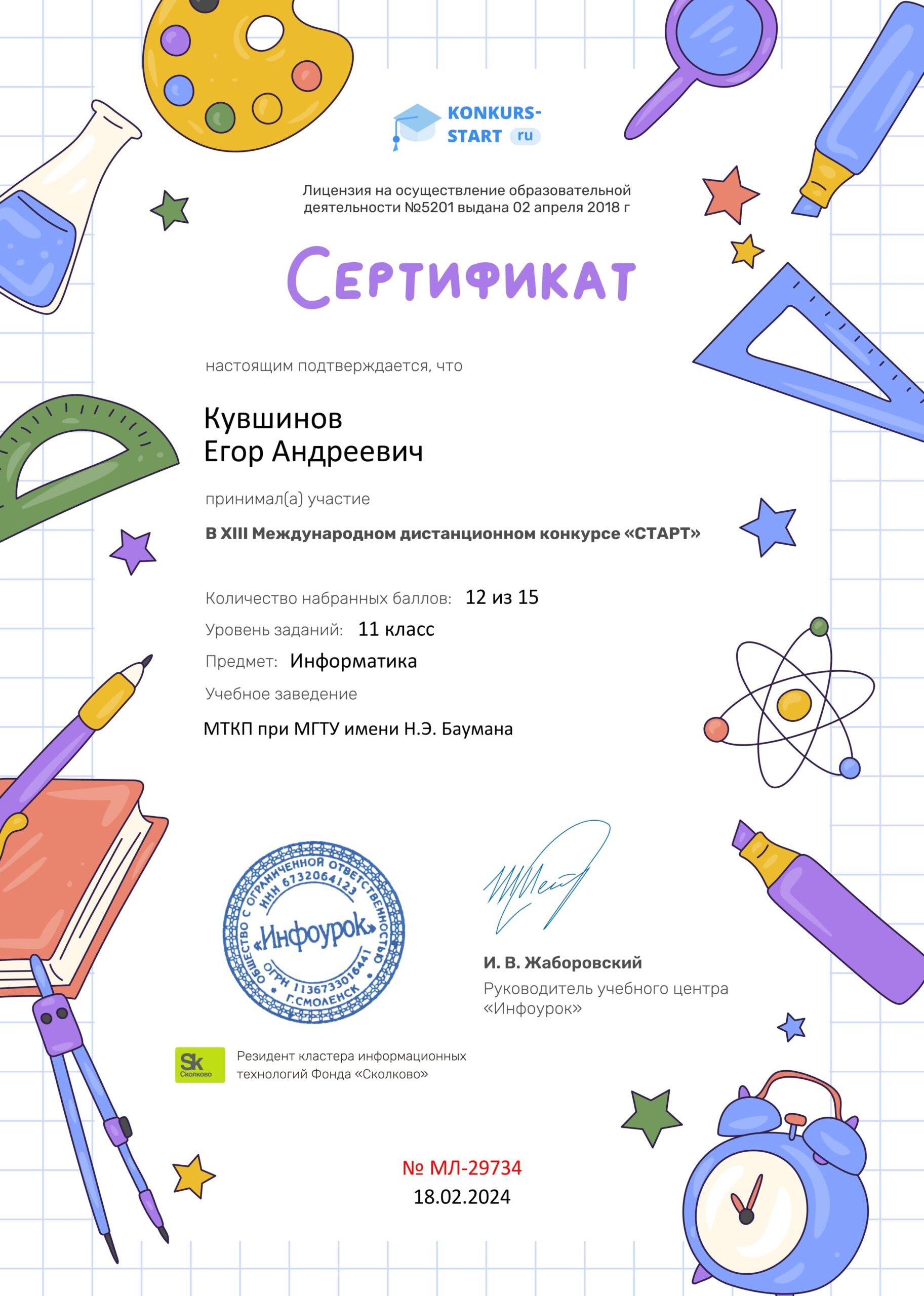 19-22 февраля 2024 года студенты I курса МТКП приняли участие в Международном дистанционном конкурсе по информатике «Старт» для школьников 11 классов и учащихся СПО. Мероприятие было подготовлено и проведено ООО «Инфоурок».