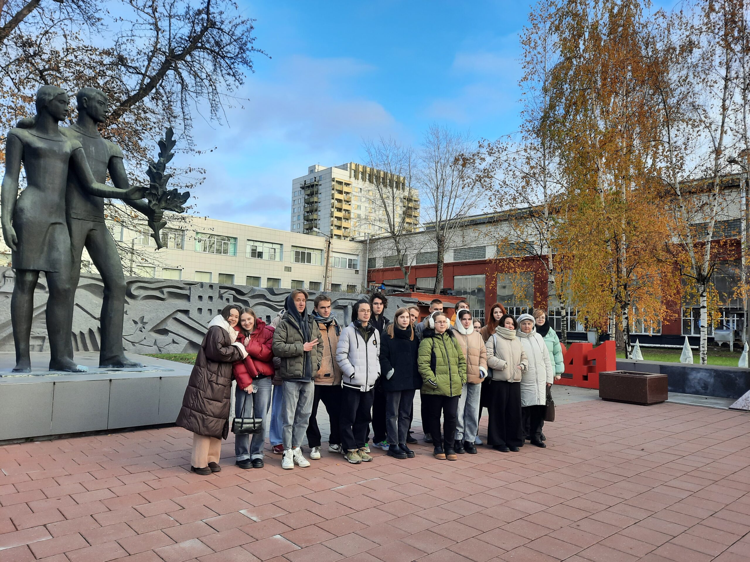 Экскурсия началась с посещения Аллеи славы завода и знакомства со знаменитым экспонатом – ракетой, сбившей 1 мая 1960 года (в период Холодной войны) американский самолет над г. Свердловском. На фоне достопримечательности ребята сделали групповую фотографию.